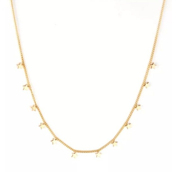 Stainless Steel kettinkje met kleine bedeltjes en een lengte van 40 cm en een verlengketting van 5 cm.