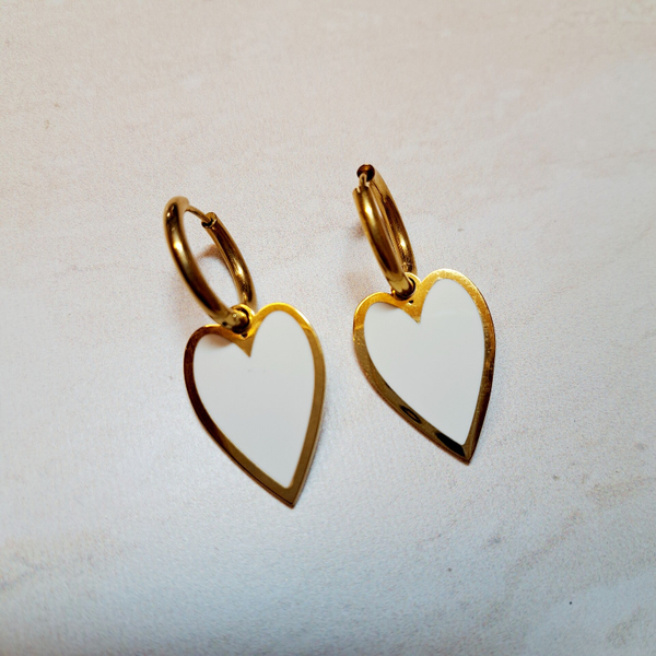 Stainless Steel oorringen van 16 x 2,5 mm met Bordeaux rood hart, ook van Stainless. Verkrijgbaar in goud.