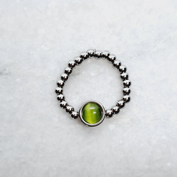 Deze elastische ringetjes zijn gemaakt van 3mm kraaltjes in goud of zilver met een steentje in verschillende kleuren.