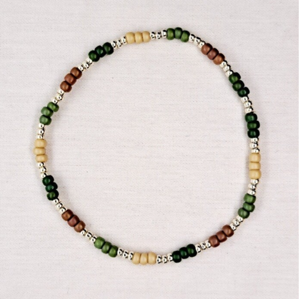 Elastisch armbandje van iets grotere, matte Miyuki kraaltjes en details in goud of zilver.