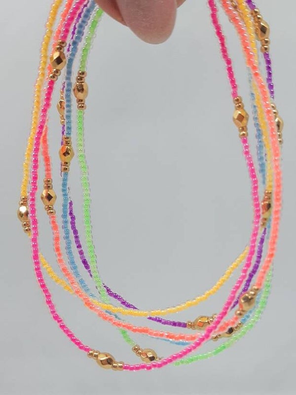 Enkelbandje van Miyuki kraaltjes, gecombineerd met facet kralen van DQ metaal en accenten van goud of zilver.